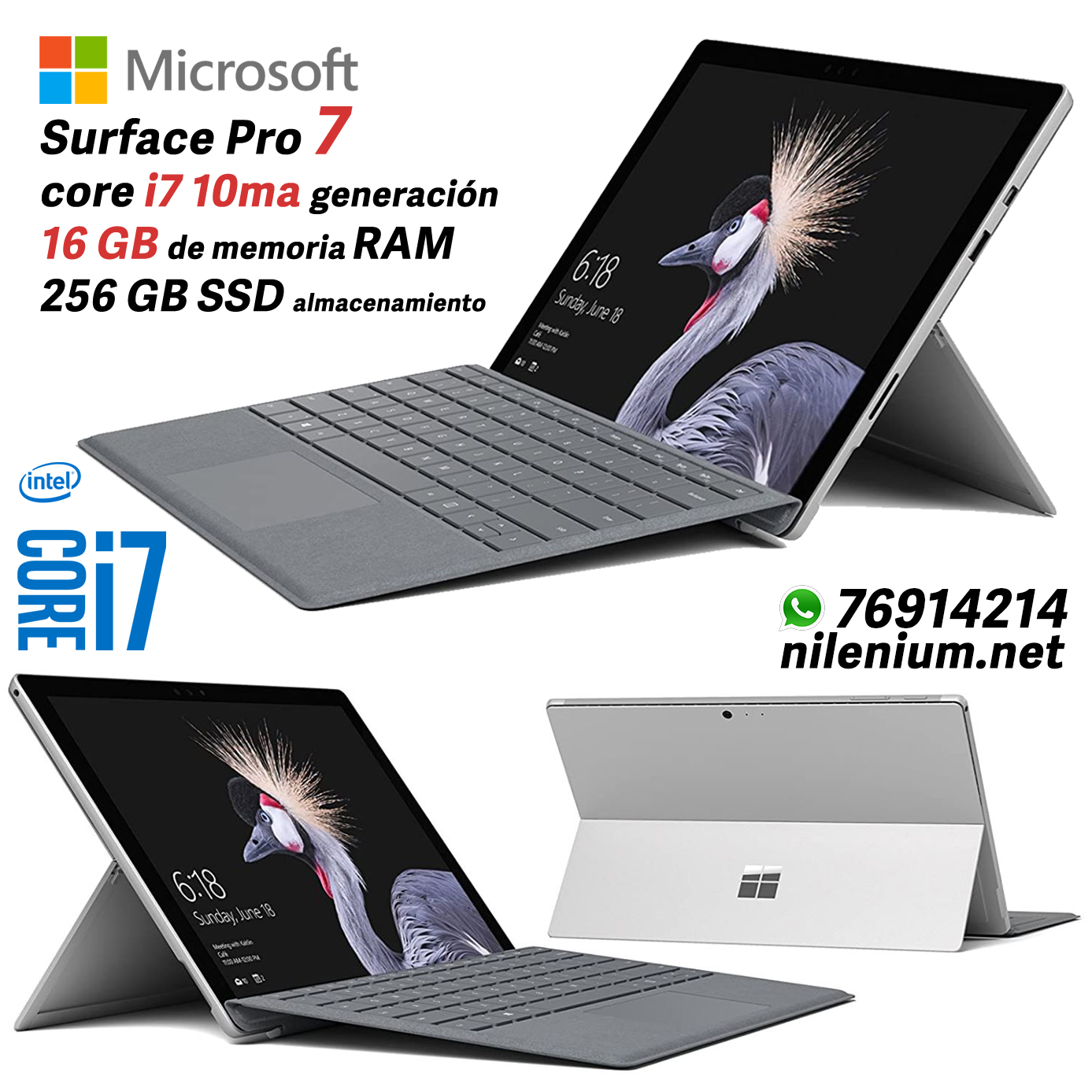 ¡Oferta! Surface Pro 7 – i7 10ma, 16 GB, 256 GB7,900.00 Bs. 7,000.00 Bs. Tablet/laptop Microsoft Surface Pro 7 Pantalla touch de 12.3 pulgadas con teclado magnético tipo funda Procesador Core i7 de 10ma generación, con 16 GB de memoria RAM, 256 GB de memoria SSD para almacenamiento, Windows 10 pro Incluye: Tablet, Teclado magnético, cargador de energía, todo original, sin caja Estado: Segunda mano, en perfecto estado Colores disponibles: Tablet Negra, Teclado Gris 2 disponibles - Surface Pro 7 – i7 10ma, 16 GB, 256 GB cantidad + Añadir al carrito Categorías: Electronica, Microsoft Surface Descripción Descripción Microsoft Surface Pro 6 Tamaño/resolución de la pantalla 12.3 pulgadas, 2,736×1,824 pixeles, táctil CPU Intel Core i7-1065G7 de 1.3 GHz de 10ma generación Memoria (RAM) 16GB Gráficos Intel® Iris™ Plus Graphics 640 (integrada) Almacenamiento SSD interno de 256 GB puerto para microSD hasta 1TB (formatos: microSD, microSDHC y microSDXC) Redes Wifi dual band 802.11ac y Bluetooth 4.1 Sistema operativo Microsoft Windows 10 Pro (64-bit) Puertos y conexiones Audio 1 conector combinado para audífonos/micrófono Datos 1 puerto USB A, 1 puerto USB C, 1 ranura para tarjetas microSD Redes Wifi dual band (2.4 y 5GHz) 802.11ac y Bluetooth 4.1 Contáctanos También te recomendamos… Carcasa para Surface Pro 4/5/6/7 380.00 Bs. Leer más Microsoft Surface Docking Station modelo 1661 (formato cargador con cable) 900.00 Bs. Añadir al carrito ¡Oferta! Cargador para Surface Original 600.00 Bs. – 1,000.00 Bs. Seleccionar opciones Microsoft Surface Docking Station modelo 1664 (formato base de carga) 900.00 Bs. Leer más Microsoft Surface Pro 4 – i7, 16GB RAM, 512GB SSD 5,500.00 Bs. Leer más Microsoft Surface Pro 4 – i7, 16GB RAM, 256GB SSD 3,300.00 Bs. Leer más Lápiz Microsoft Surface pen 400.00 Bs. – 900.00 Bs. Seleccionar opciones Productos relacionados ¡Oferta! Mini pc Dell core i7 7ma 4,200.00 Bs. 3,900.00 Bs. Leer más Tablet PC Android marca Teclast T30, 10.1″, 4GB de RAM con Teclado 3,200.00 Bs. Leer más Central Telefonica Siemens 1,500.00 Bs. Leer más Proyector de Optotipos 10,440.00 Bs. Añadir al carrito